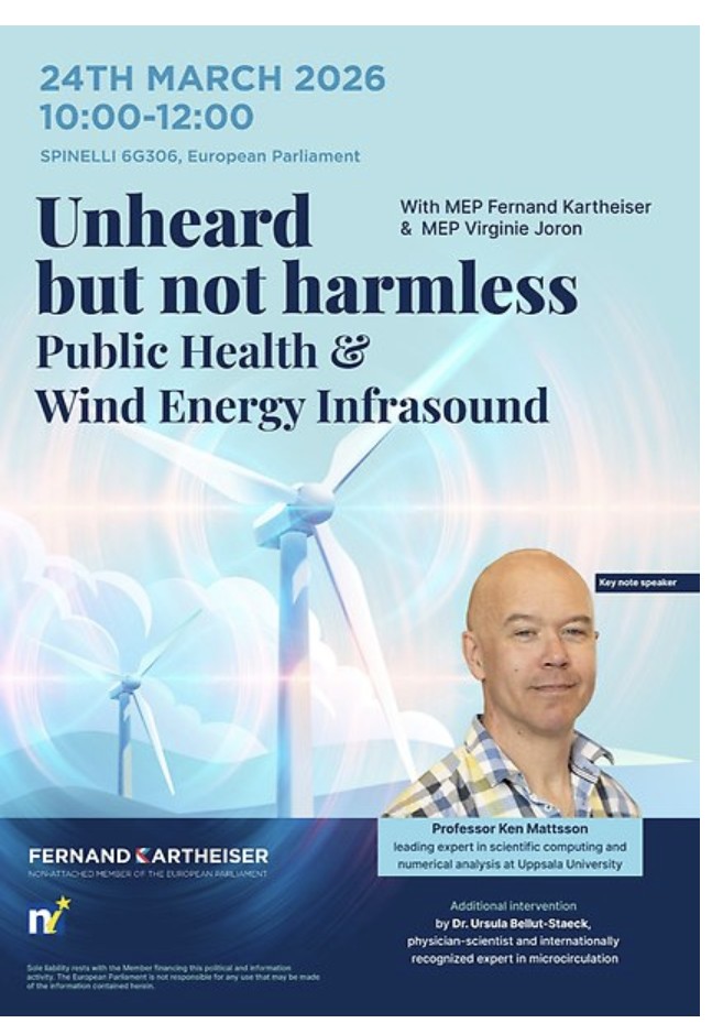 “Unheard, but not harmless: Public Health and Wind Energy Infrasound” was de titel van de conferentie die op 24 maart 2026 werd gehouden voor de Europese parlementsleden.